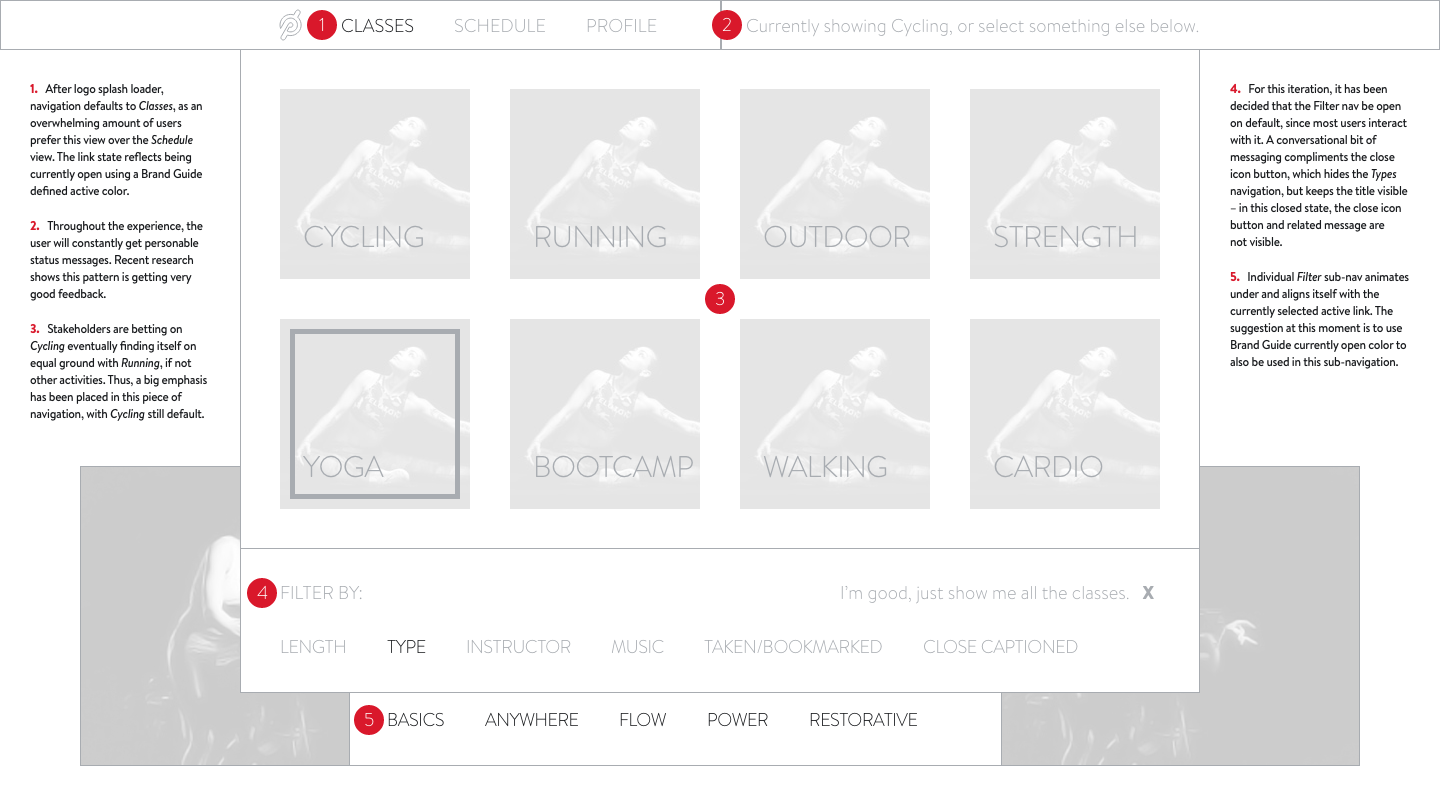 The original Peloton bike screen display was assembled in the old Java Android Studio, without assessing performance against an HTML (React?) version. Research budget was placed aside to testing this "B Version" prototype. I designed and created the user flow and motion graphics for the prototype. I was also involved in the research.